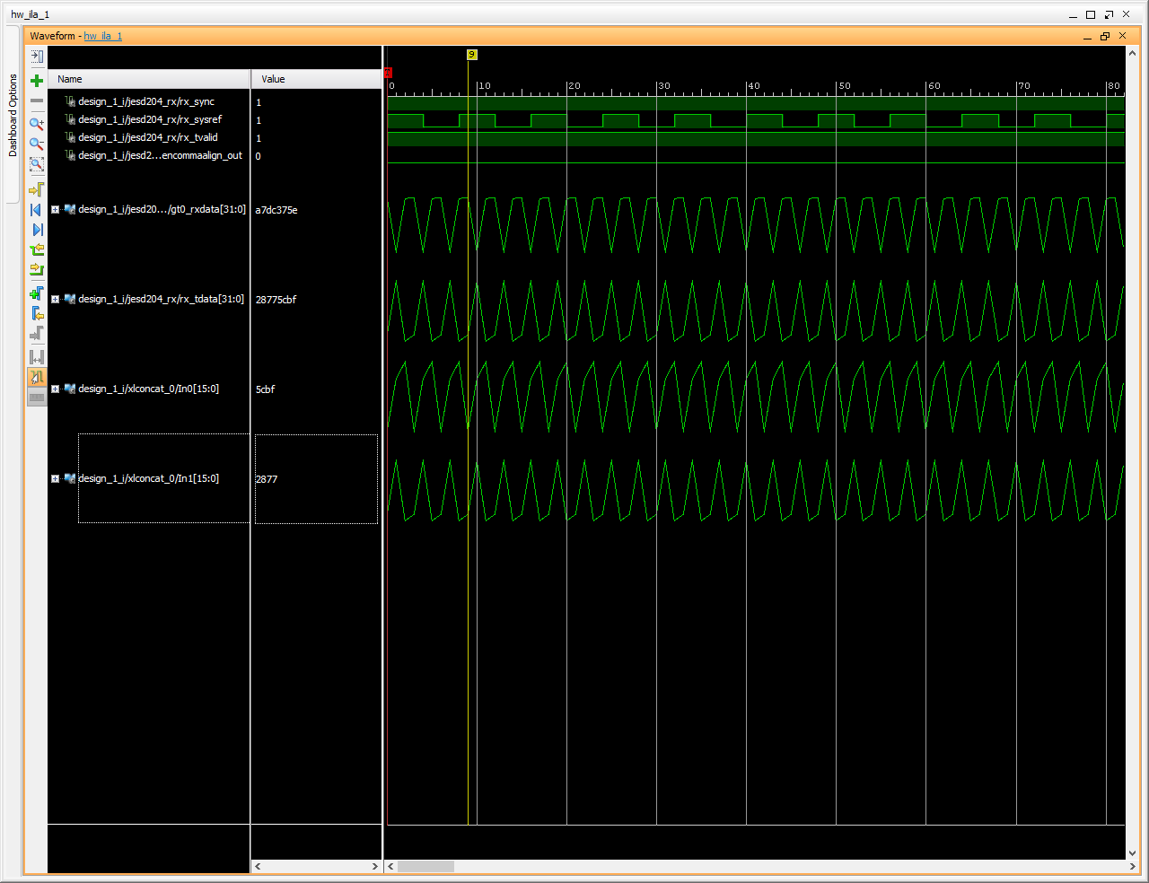 I am debugging the signals using JTAG and I can see the signals going into the JESD core but dont see anything coming out of it. Can you tell me what should I look for in order to see the data coming out of the JESD core?