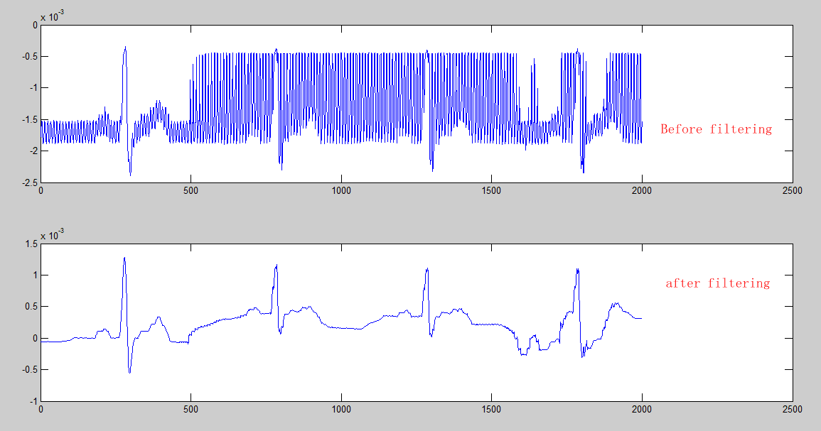 Third: I set the gain to 2, i capture the ECG signal , and find the signal is cut- off and the Amplitude of R-Wave can not be exact estimated , it is seen in the following graph,the signal is cut-off from the second R-wave ,why?