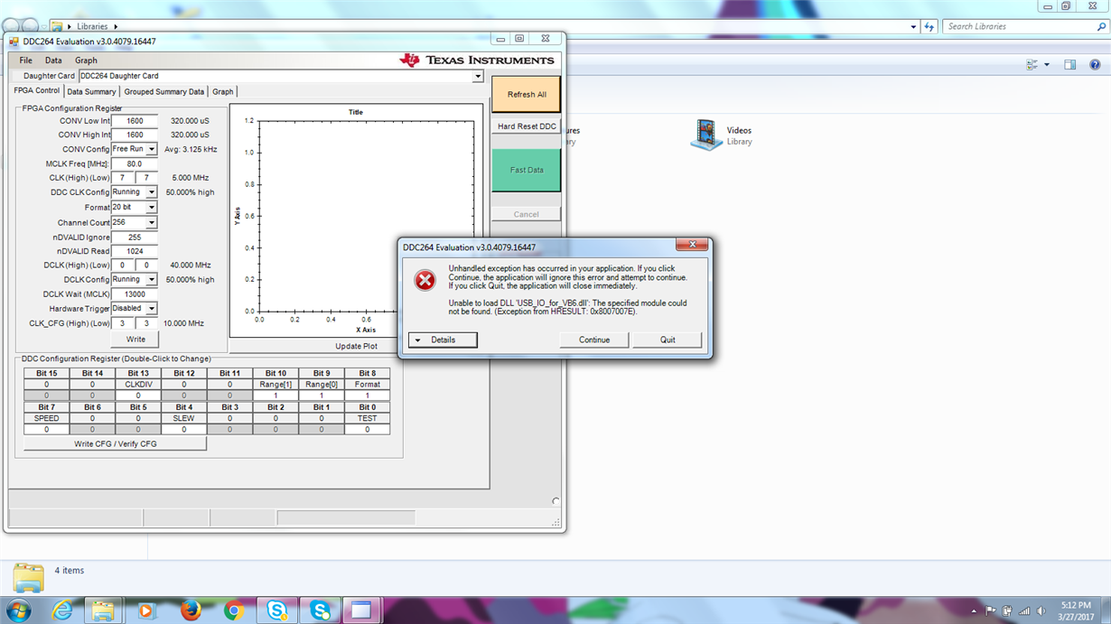 I have an issue with DDC264EVM communication with Win7 dell laptop. Like the RandL answred for " DDC264 EVM Windows 7 64 install", did exactly same for my DDC264EVM installation, but I am getting few errors like the below shown screen shots