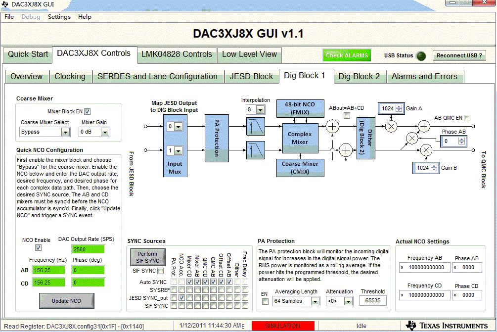 I would like to use NCO Block,So Enable Mixer Block,Course Mixer=Bypass,NCO Enable:register Config2=0x20D0,