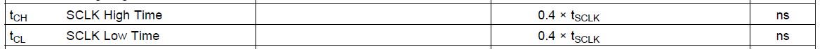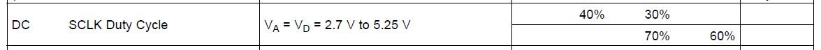 SCLK duty cycle needs to be between 40% and 60% according to the data sheet.