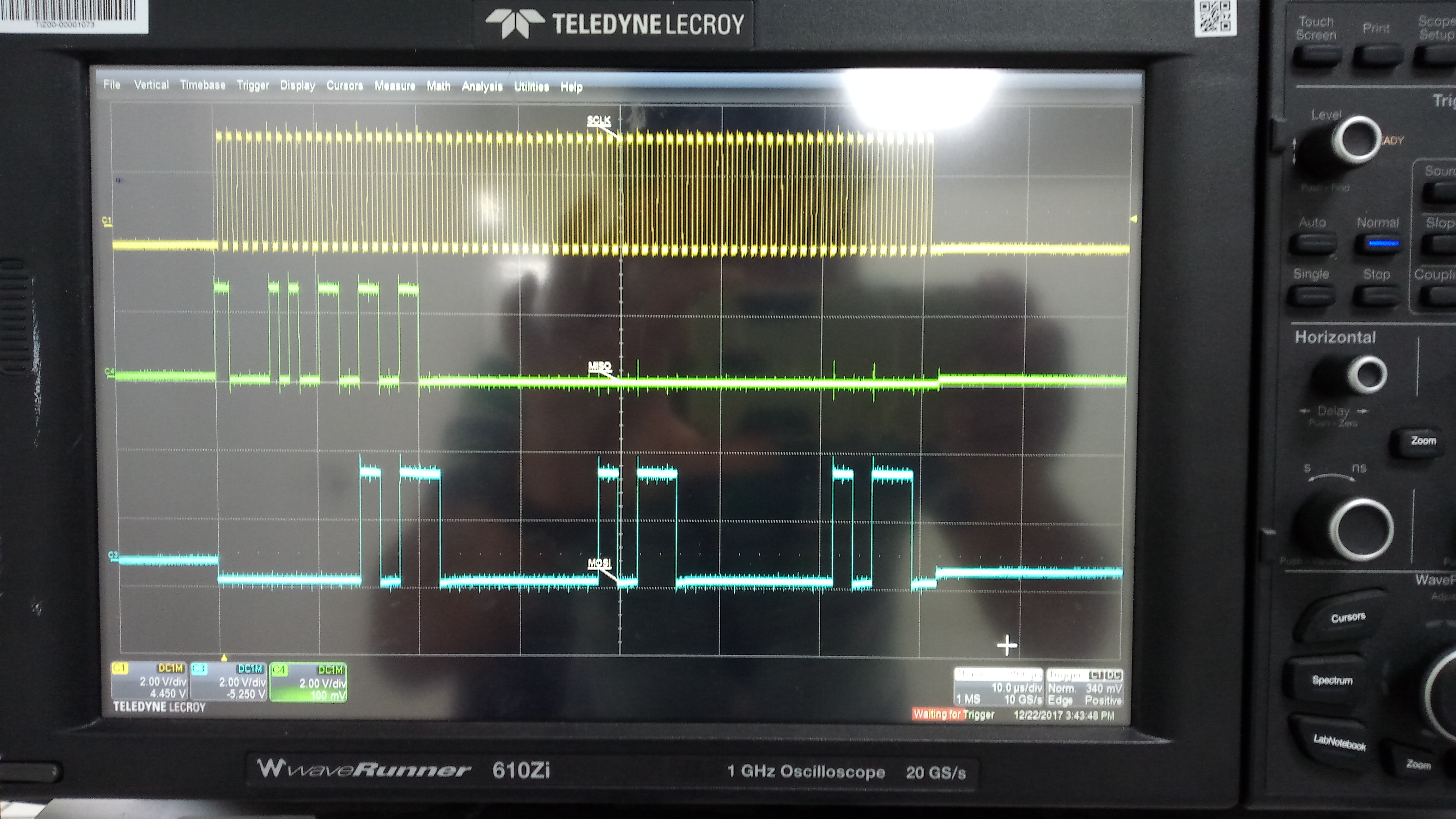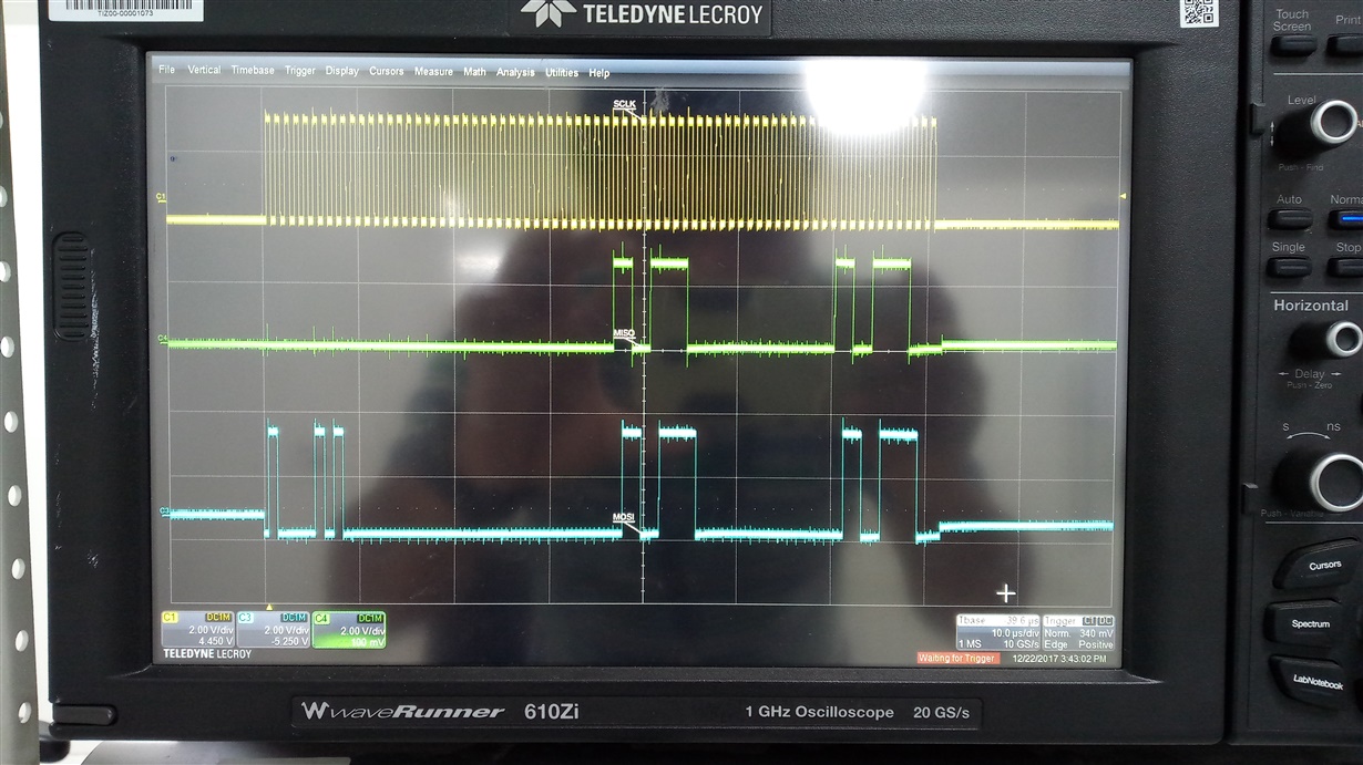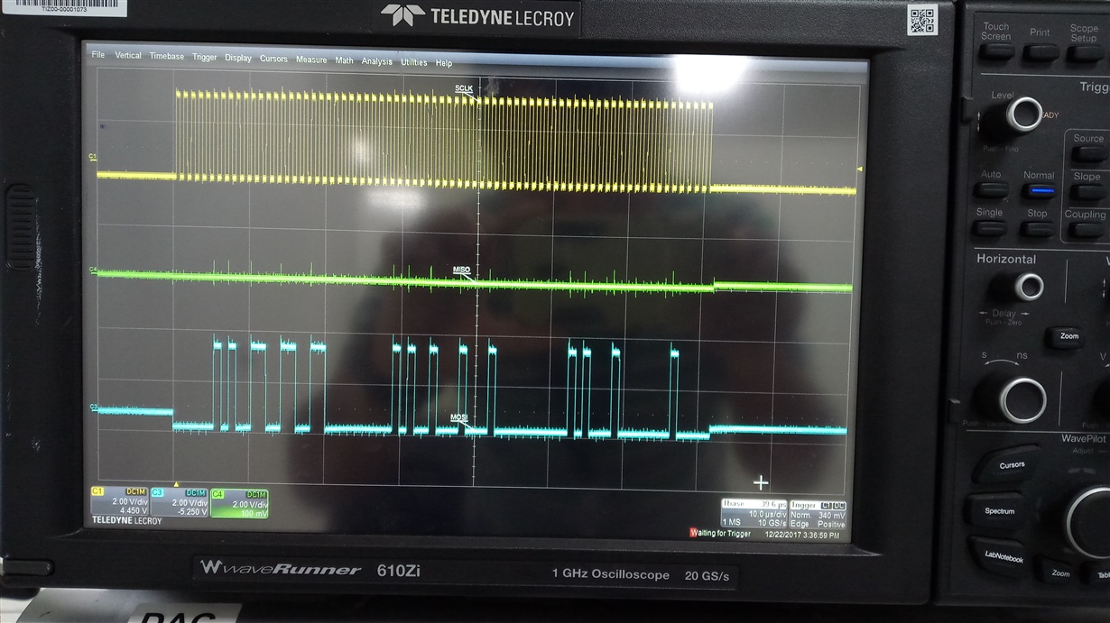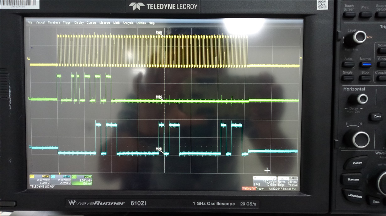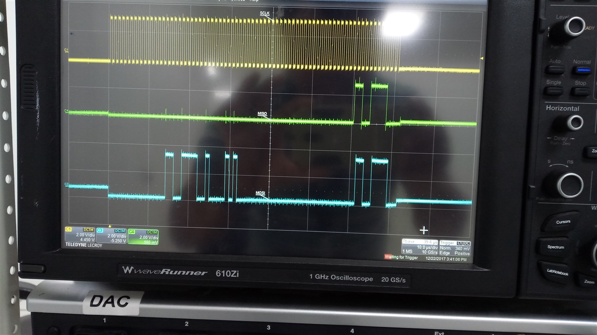 Hello, we're using the DAC7716 in a design where 5 DACs are daisy-chained, i.e. there's a common clock and CSn and successive MOSI/MISO are linked. There is no problem performing daisy-chain mode writings, as indicated in the datasheet Fig. 2. The daisy-chain readback doesn't work however, although all readback timings from Fig. 3 are respected. There is no specific figure for *daisy-chain* readback mode in the datasheet and moreover it is not working as expected (many zeros returned in the 120-bit vector) which makes us wonder if it is indeed supported? Since the data is shifted out when CSn is high I don't see why it wouldn't work (theoretically). Thanks for looking into this.
