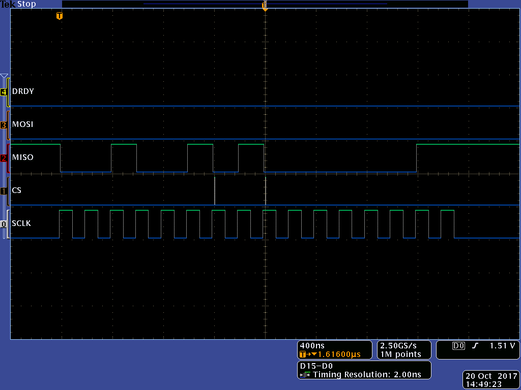 But it has a problem with SPI. When I check STAT_S register, I get this response, 0010010100000011. From the instruction on Page 59, Bit 1 indicates that "CS is asserted or deasserted when SCLK is high" and Bit 0 indicates "Not enough SCLKs are sent per frame". Could you give some suggestions on how to solve these two errors?