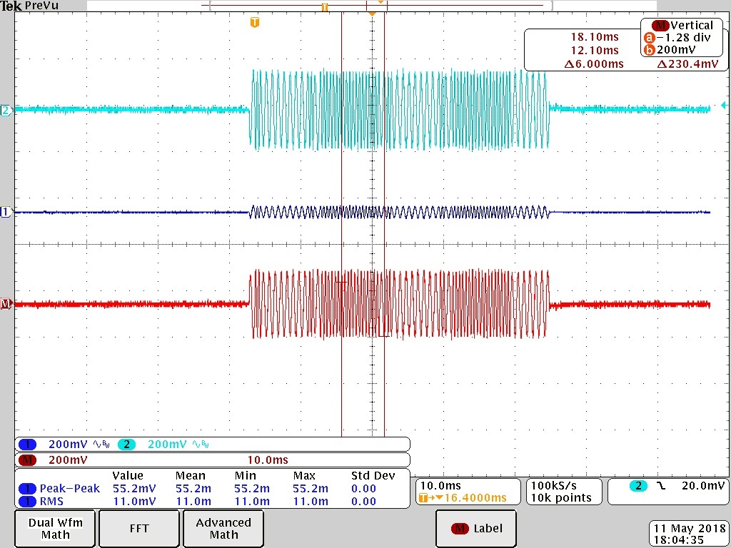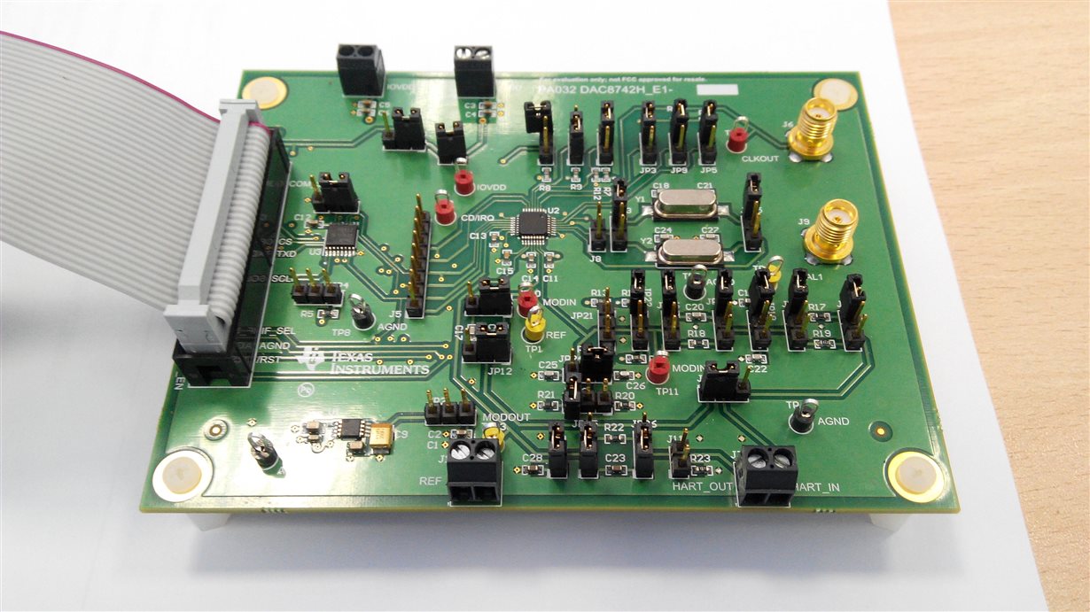 They try to simulate a modulation on the modem output. But there is no signal on the output line of IC DAC8742 (signal MODOUT, the testpoint on EVM for oscilloscope probe is TP13).