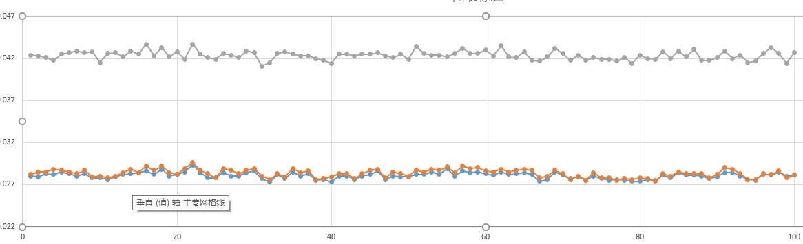 This is the ADC output versus time of different channels. Red and blue curve are AIN1 and AIN2. Gray curve is AIN3. All three channels measure the same constant optical source through three respective fibers.They are not straight lines, because there is noise and error. However, you can see AIN1 and AIN2 are almost synchronous, and AIN3 is quite different from them. We swapped the photodiodes, but the phenomenon remains, so it is not due to the difference of photodiode.