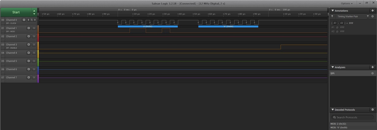 Send Code: (confirmed with Logic analyzer) 0x9600 should be 1.2V at the output real output is: 0.032V