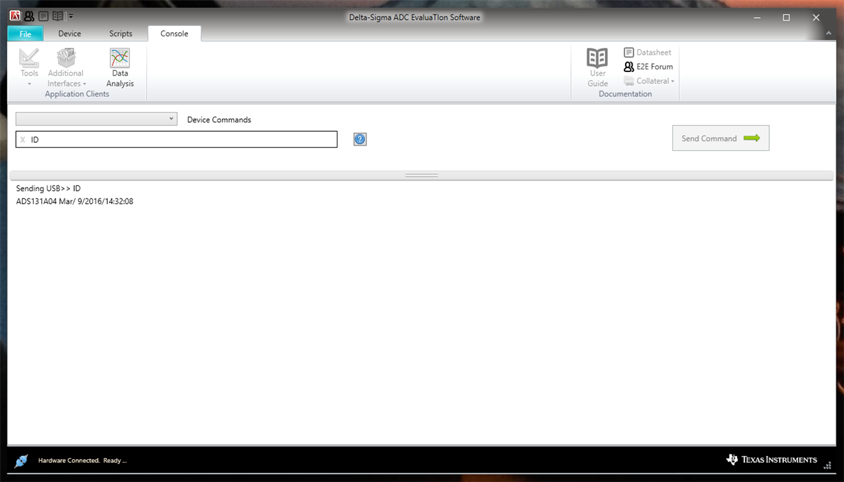 I have an issue with the ADS131A04 evaluation software, irt's stuck in a strange state where the device is identified but nothing else work.
