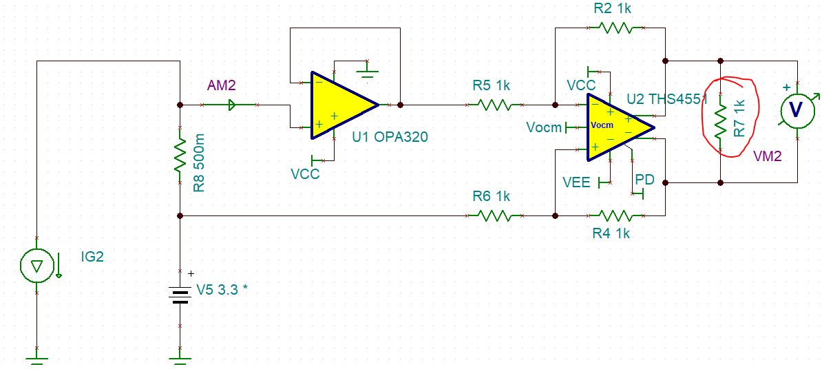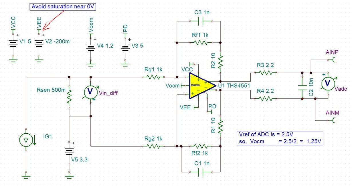 I need to measure the current from 0-3.5A in high side3.3V line in 10uA resolution. so that I chose this ADC[20-bit]. I am going to use 0.5Ohm current sense resistor and plan to measure by the drop of that resistor. I simulated this front end in Tina-TI as per the Figure i mentioned above. it gives very good response in the simulation and the changes for every 10uA also linearly changing in the simulation.