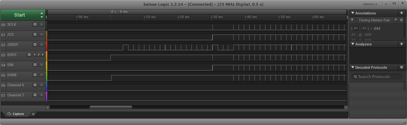 *DRDY is OPEN, for probing purposes. I expect a HIGH signal but am getting the signal shown above.