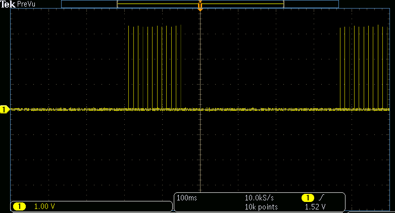 The DRDY line is suppose to be active low so I expect the voltage to be HIGH at 3.3V, but I'm seeing the following on the oscilloscope even though the ADC is in STANDBY MODE: