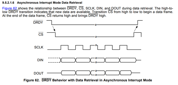 I'm currently trying to receive data from the ADS131A02DC, but am having a problem with the DRDY line. My hardware is set up such that M0 is HIGH (asynchronous interrupt mode), M1 is HIGH (32 bit), and M2 is LOW (hamming disabled). I've managed to successfully write and read to the ADC registers and have read the STAT_M2 register to verify that my hardware is setup correctly (it is).