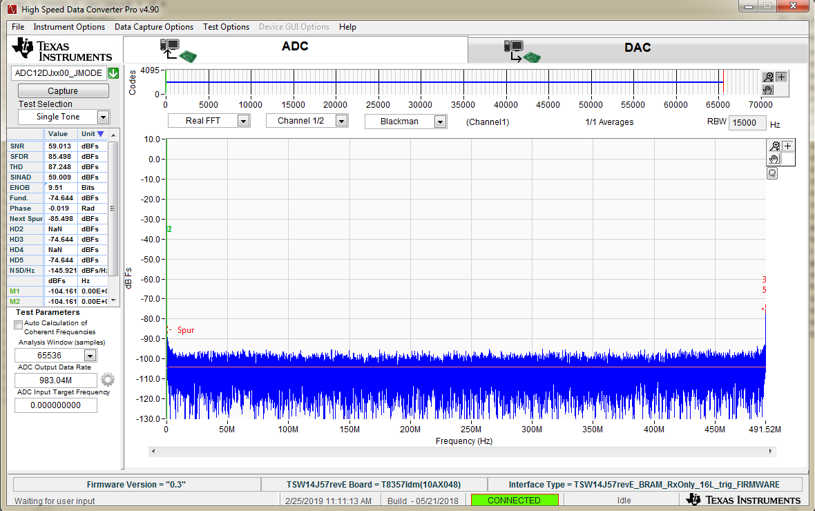 I am using the ADC12DJ3200EVM board with TSW14J57 board set to JMODE2. My clock rate is 983.04MHz. We need to capture 10 ms or more worth of data in order to process an LTE data frame. I find that the GUI hangs when it needs to store more than 10 million samples. Is this because of the JMODE or is there some other problem?