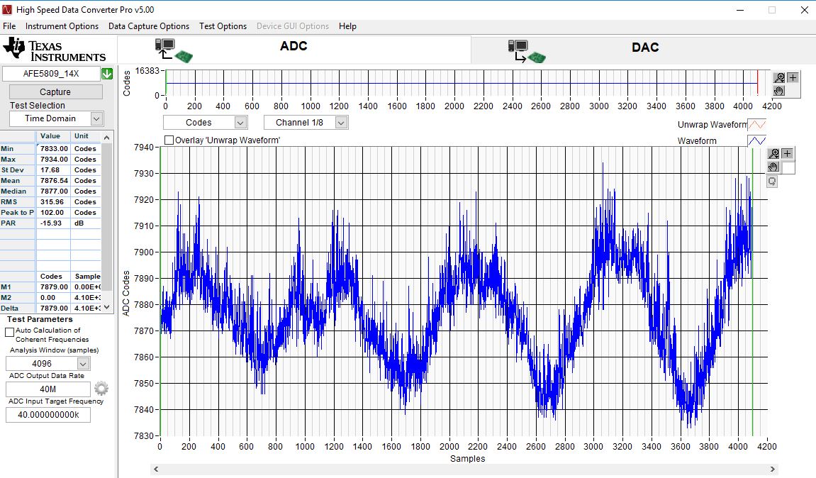 Last image, TSW1400evm configs, as you can see, on the tab of data capture options I put continous capture.