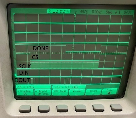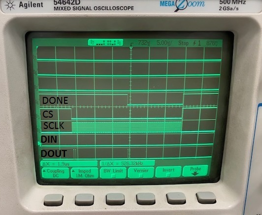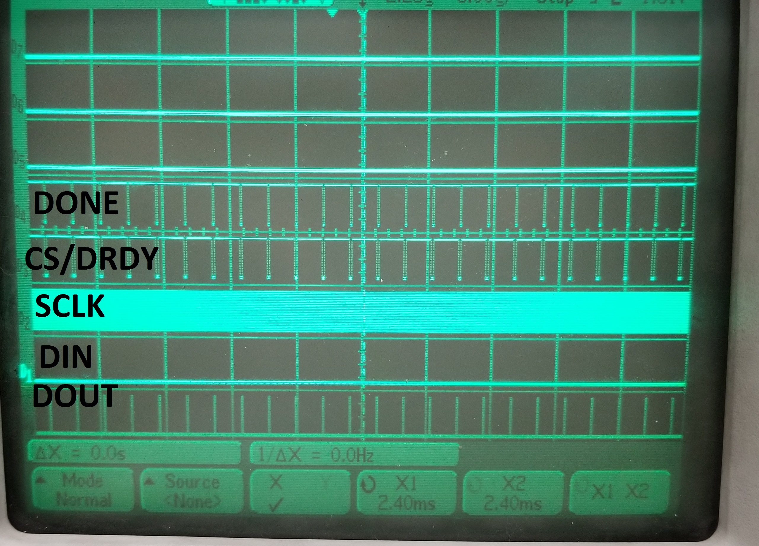 We checked all the registers to make sure we are configuring them correctly, and all gave us back wanted results. both DONE and CS/ /DRDY frequencies match.