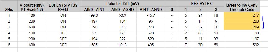 We are using ADS1256 for measuring Differential Analog input, But we are facing one problem. When BUFFEN register is ON we are not getting proper ADC reading above 200 mV from the ADC , But after disabling BUFFEN register we get acceptable ADC reading. We are proving the analog input from a voltage calibrating device. Kindly Let us know what is causing this problem.