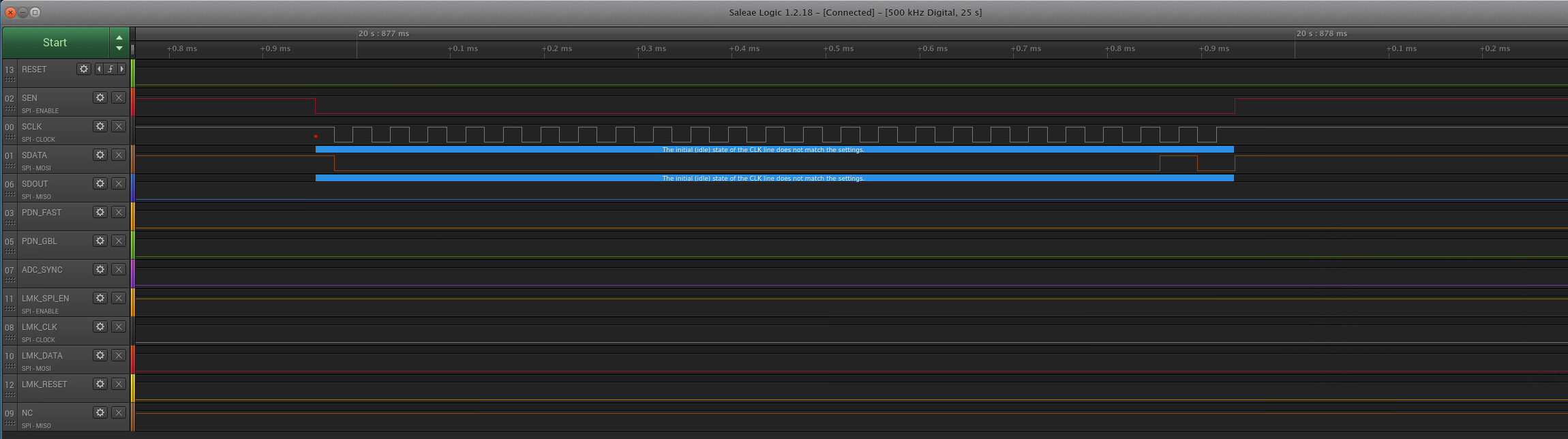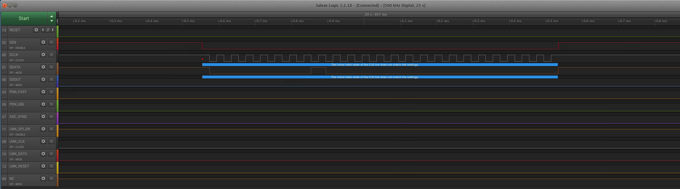 2. Maybe the ADS52J90 has a minimum SCLK speed even though it is not listed in the datasheet.