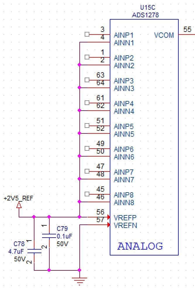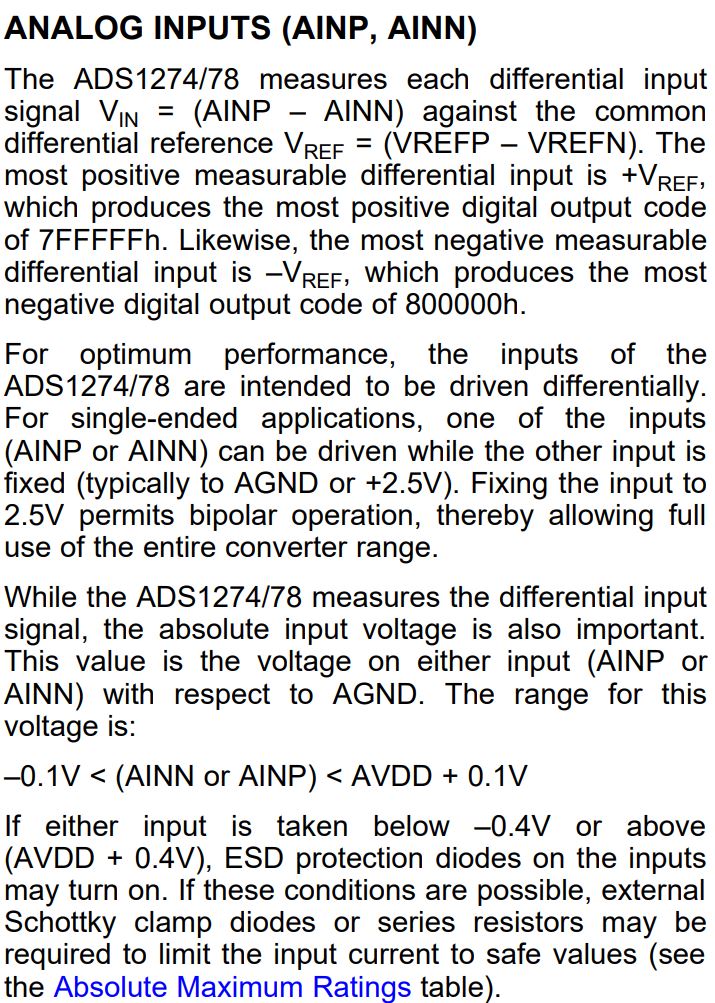 The datasheet hast the info below. My question is how do I properly drive the AINP input if I have AINN connected to a reference voltage of 2.5V (See below)? To get the full converter range do I drive AINP from 0 to 5V or am I limited to driving 0 to 2.5V it is not made very clear.