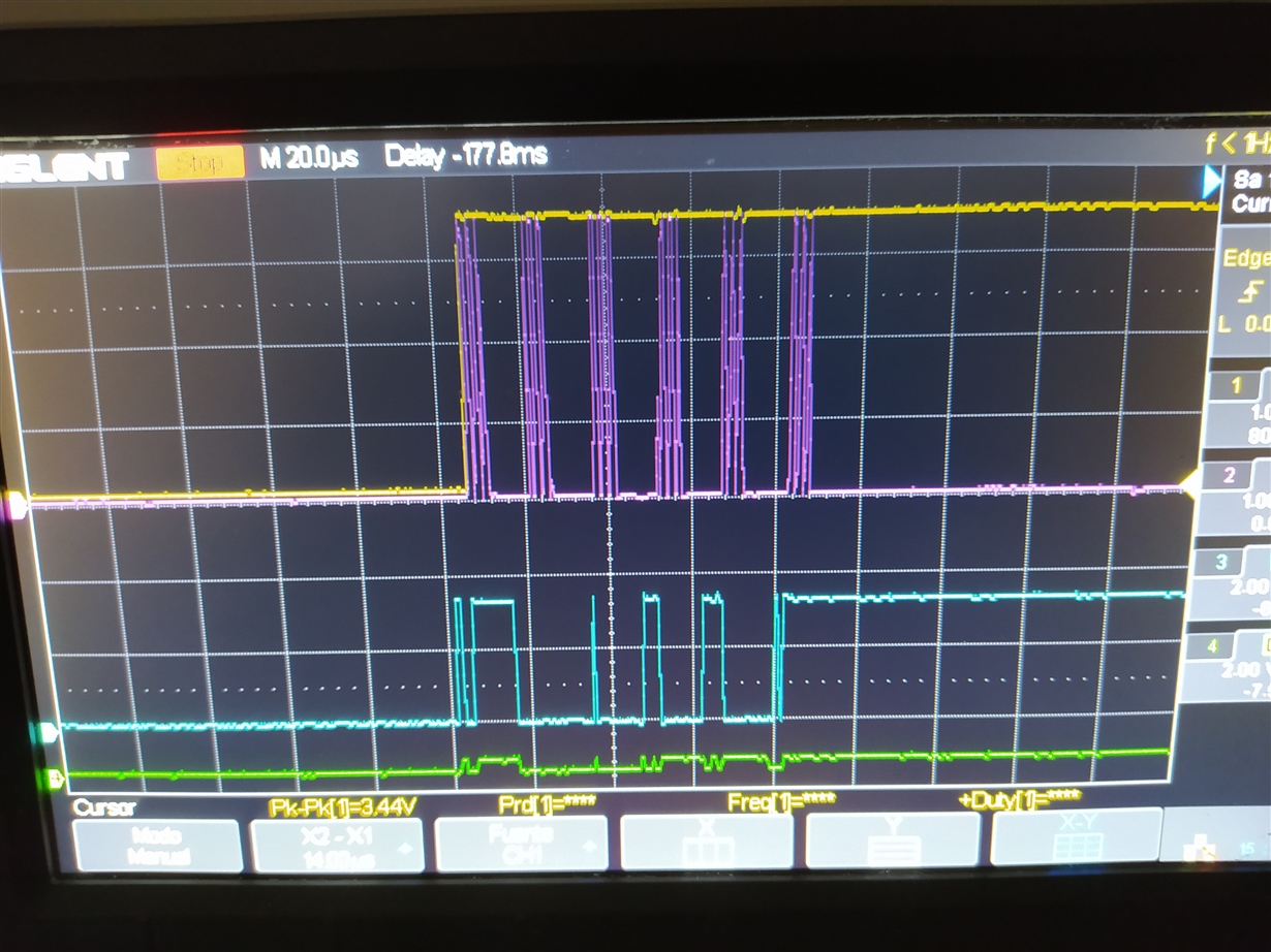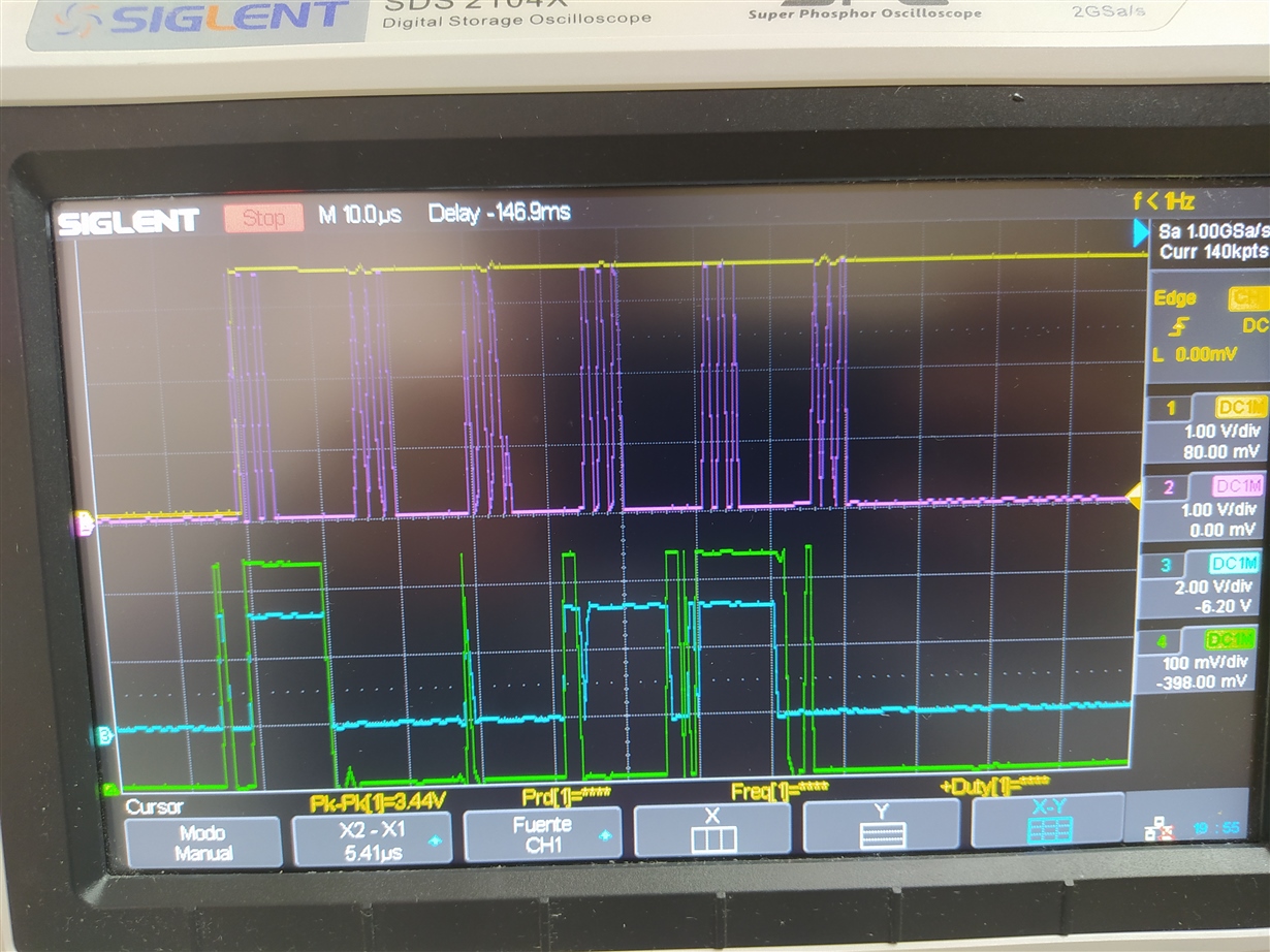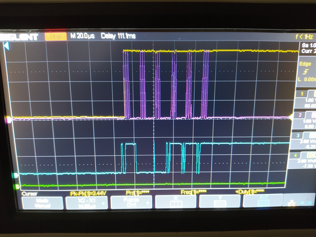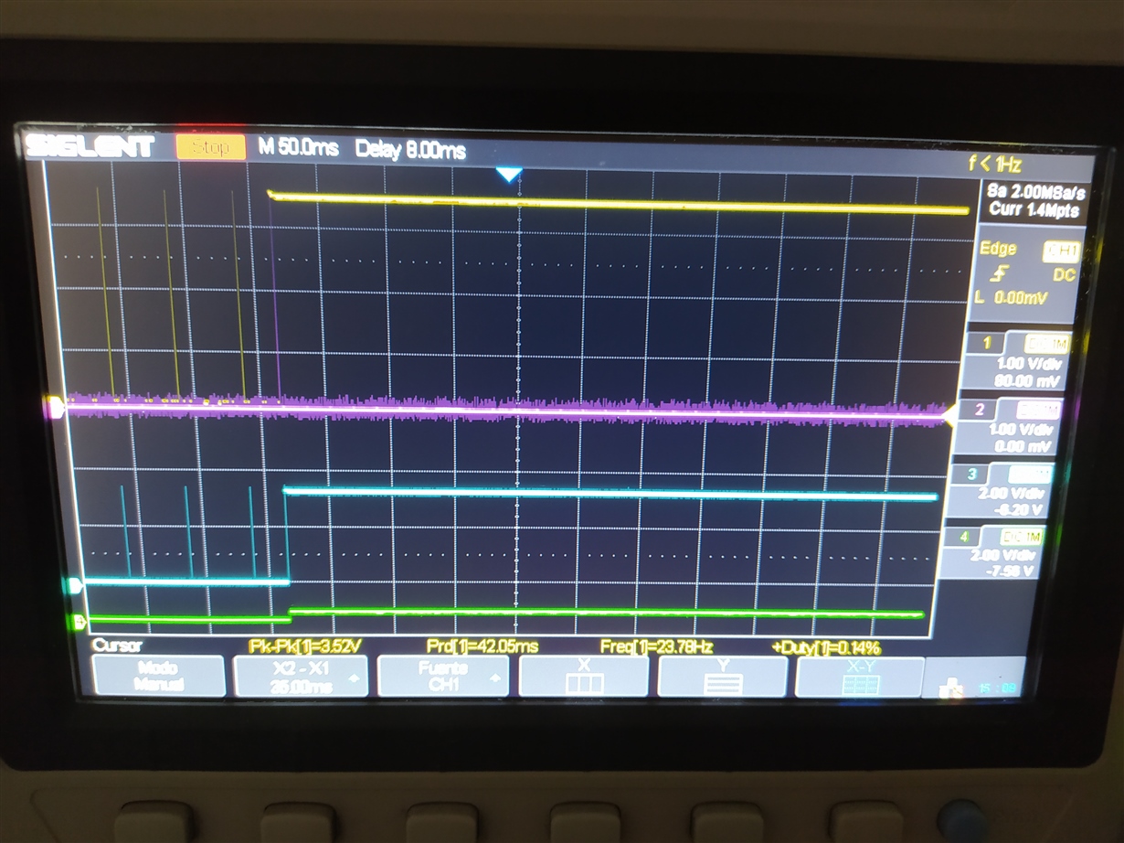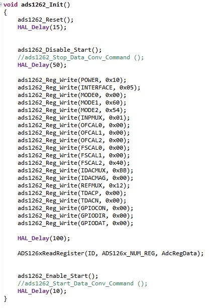 *The initialization of ADS1262 is good, since the registers are written correctly and the pin /DRDY starts to come low to the programmed frequency.