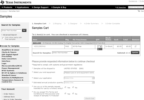 Click the "Free Sample" Checkbox, and then click the "Get Free Samples" button, and it will bring you here:
