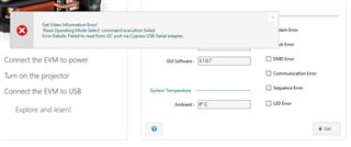 Evm program shows these error messages when we try to connect DLP3010EVM-LC GUI software.