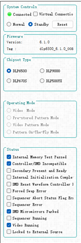 When we flashed the firmware, reboot, the heartbeat LED blinking, on the GUI "Controller/DMD incompatible" was checked.