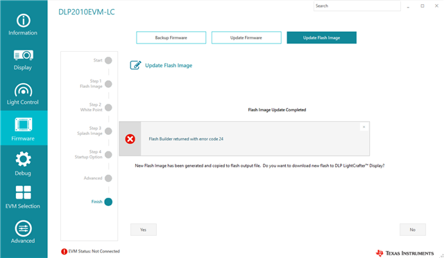 When I tried to update the firmware it shows ended up with an error message saying "Flash Builder returnned with error code 24"