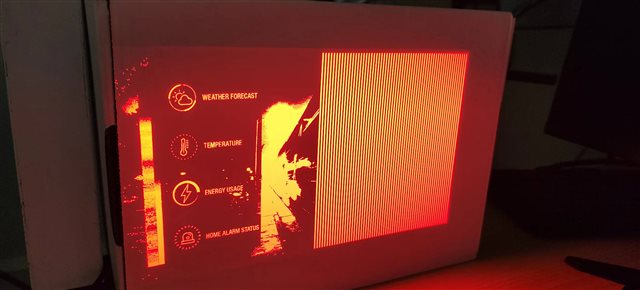 The problem is showed as above. When I use the light control function , the projected pattern only shows half of it and the other part of screen is the homepage picture . However , other fuctions like "display" and "video" are normal. I have tried to update the firmware , but it cannot solve the problem.