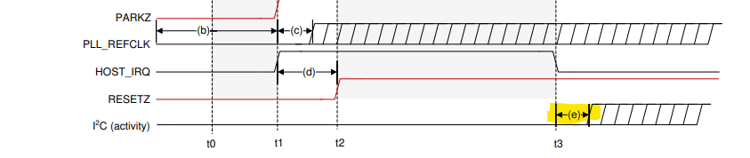 Regarding the timing of DLPC3435's HOST_IRQ and I2C, are there any timing regulations for the period from the falling edge of HOST_IRQ to the start of I2C?