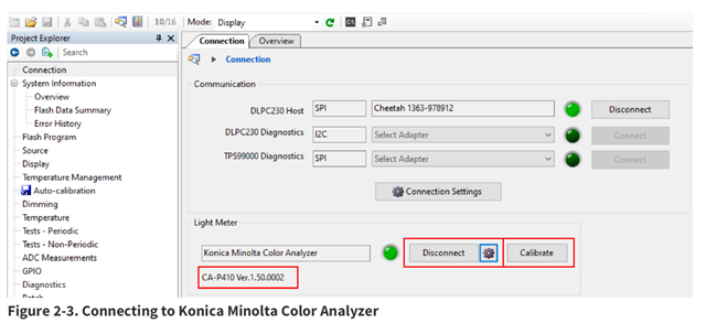 We are trying to perform a DLP4620 DMD White point calibration using the DLP230 program.