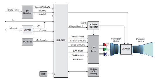 I'm designing a handset with a pico projector, the central processor that i'm using is Davinci Dm3730, and its quite powerful so i will have an hdmi interface from this processor which will be giving the video data, i thought i could easily integrate the 0.17 HVGA chipset with this processor using HDMI interface, but when i saw the pico reference schematics things got complicated, from ti's website 0.17 HVGA chipset is actually a club of three chips DLPC100, DLPR100 and DLP1700 check this link.