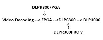 Video Decoding --> App FPGA --> DLPR300 --> DLPC300 --> DMD