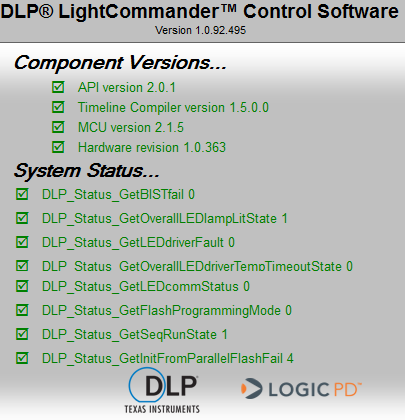 When I go back to check the system status on the splash screen, I noticed the "DLP_status_GetSeqRunState" is "1", which differs from the default value shown in the manual.