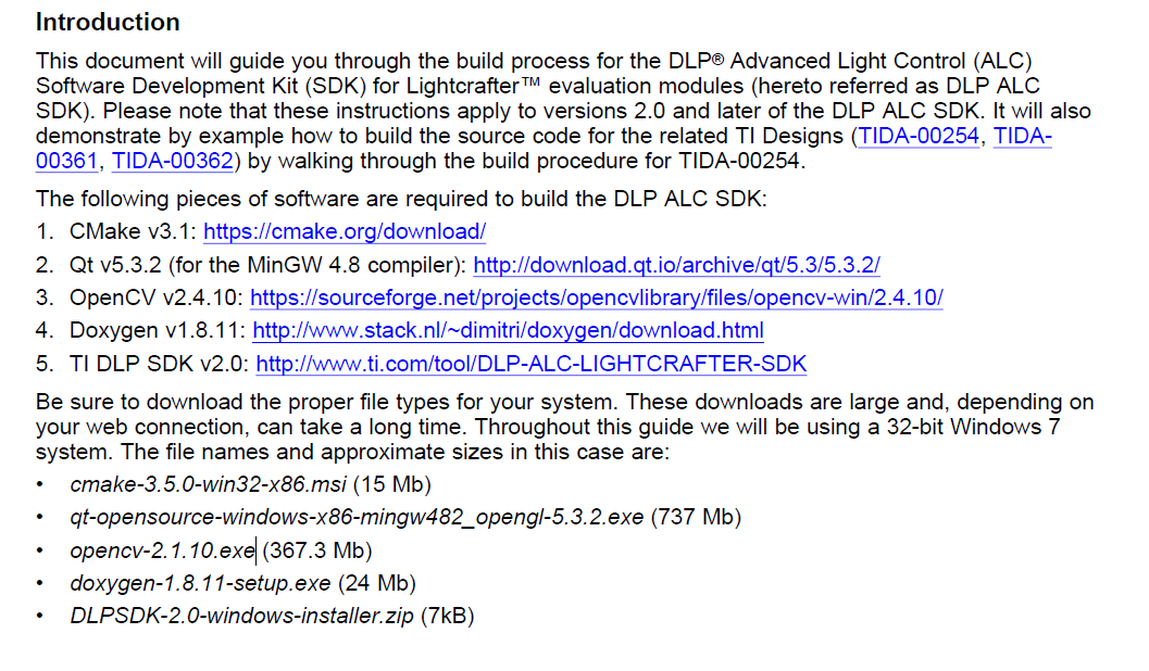 I am currently building the the DLP SDK from the online pdf and cannot configure the build of the the DLP-ALC-LIGHTCRAFTER-SDK-2.0. I can get 85% of the way through and get errors in: