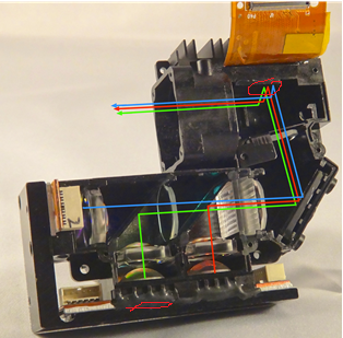 Do you know the exact light distance between the Green LED entrance and the DMD chip in Lightcrafter 4500, the two circles light distance as the following photo shows?