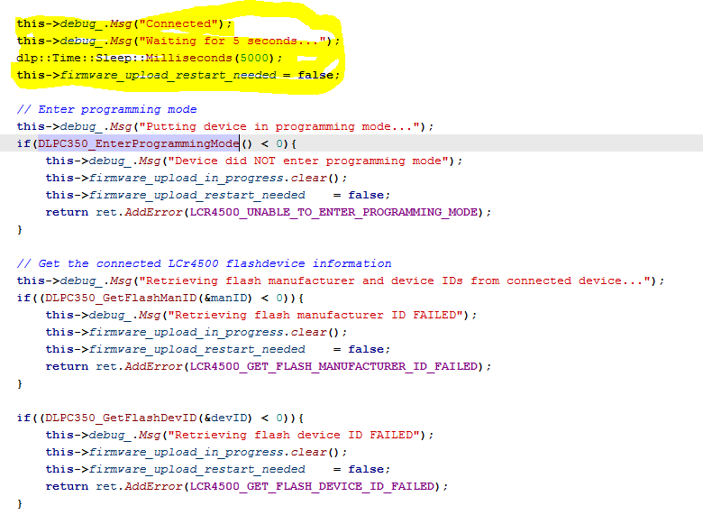 I am trying to test the 3d scanning following the steps from user guide TIDA-00254. An error occur in the step 2( 2: Prepare DLP LightCrafter 4500 (once per projector)) and showed that the LCR4500_DEBUG(0xa1eef8): Retrieving flash manufacturer ID FAILED . It seems that the problem is on my computer system win10 and it shows this problem have been found for a long time for TI. Therefore, did you find out the way to make it work successfully on the win10?