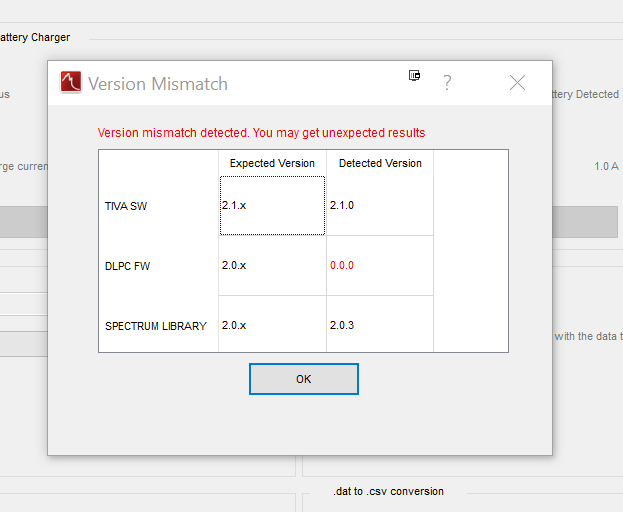 When I connect the device to the computer it shows DLPC FW Version 0.0.0