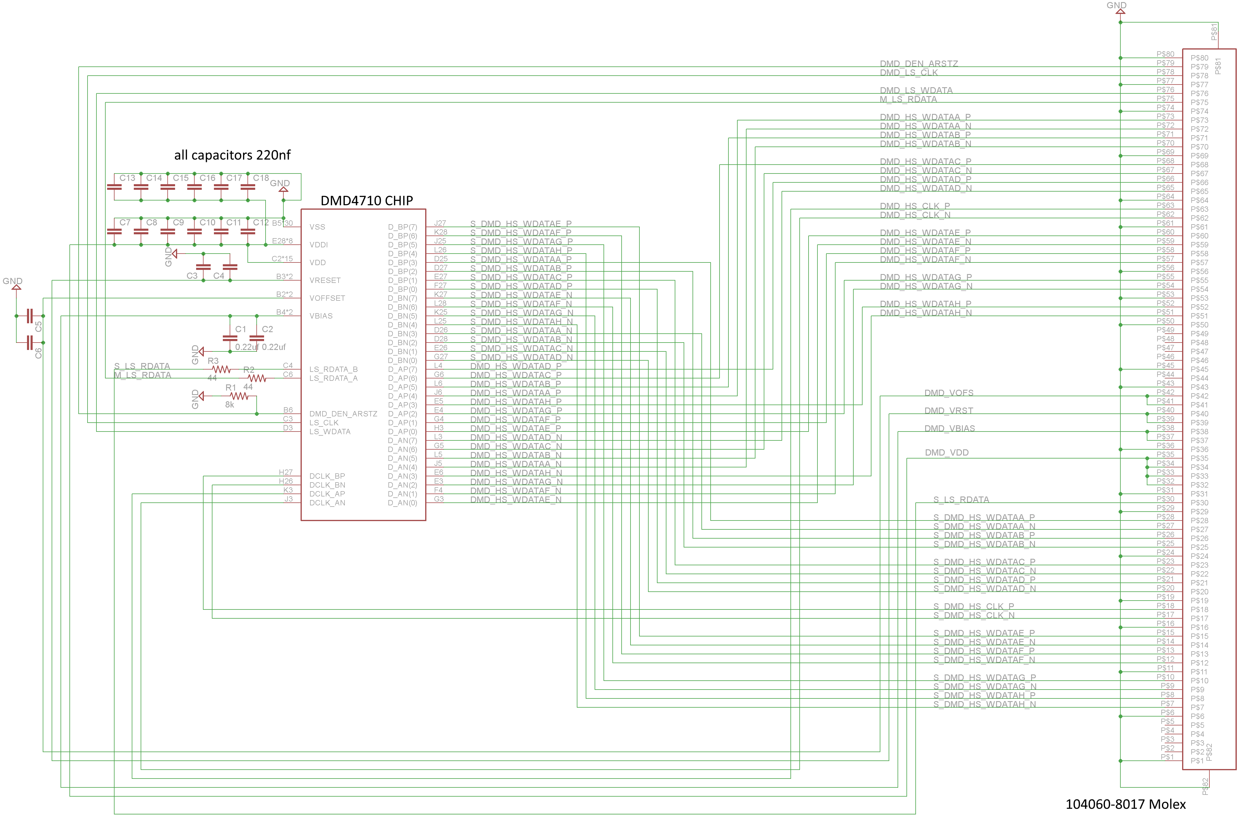 * A 6-layer PCB to mount the DMD4710 chip using the neoconix interposer.