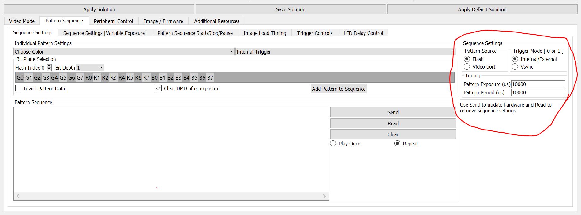 I only see reference to changing the trigger mode in the programmers guide (and even then it appears that the command needs to be sent over USB or i2c). Is there a way to do it from the GUI?
