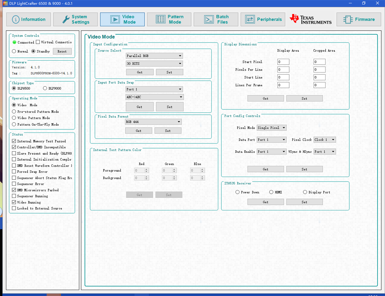 I started to run my evaluation board yesterday. At first it is running OK but several hours later it got stuck in Standby Mode. And it stayed in Video Mode. I cannot switch it to other modes. The attachment is a screenshot of the GUI. The problem is exactly the same as this thread: