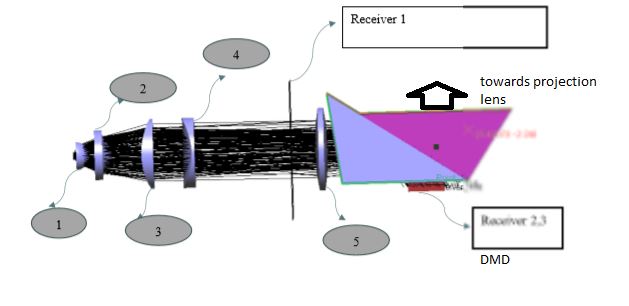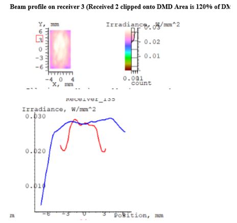 The system designed as above using cylindrical lens patterns generates an uniform illumination at dmd.