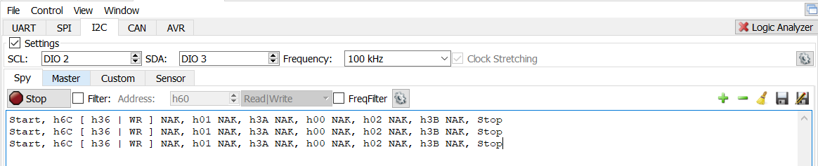 3. Confirmed with other devices the I2C interface.