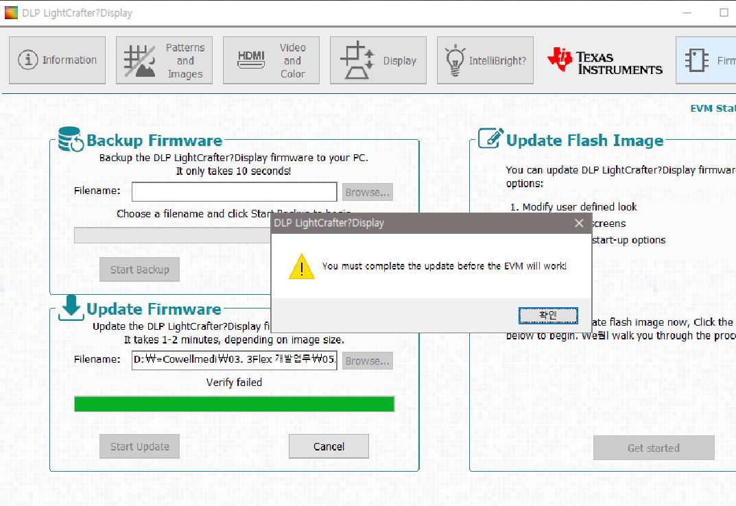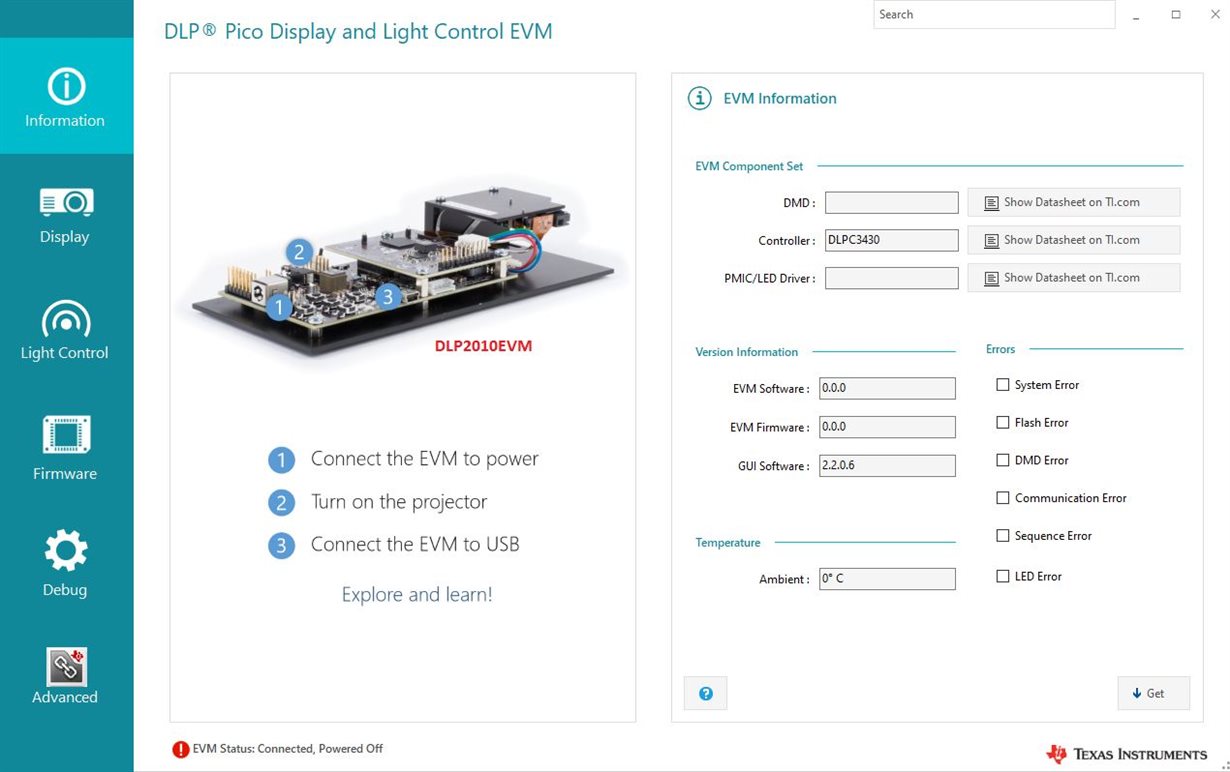 Warning! EVM DMD Device ID does not match GUI Product ID!