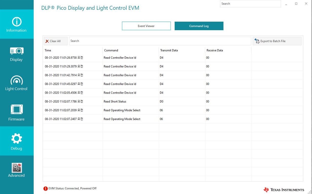 Currently, I am testing the operation of various DLP engines with DLP2010EVM-LC.