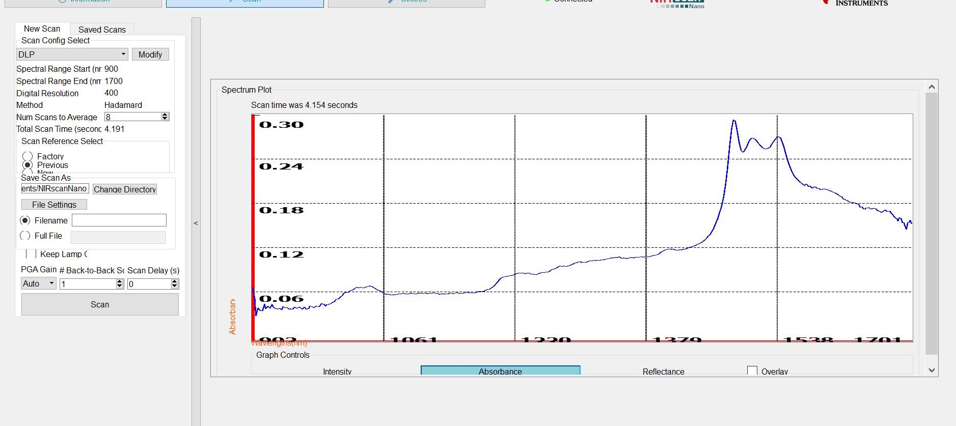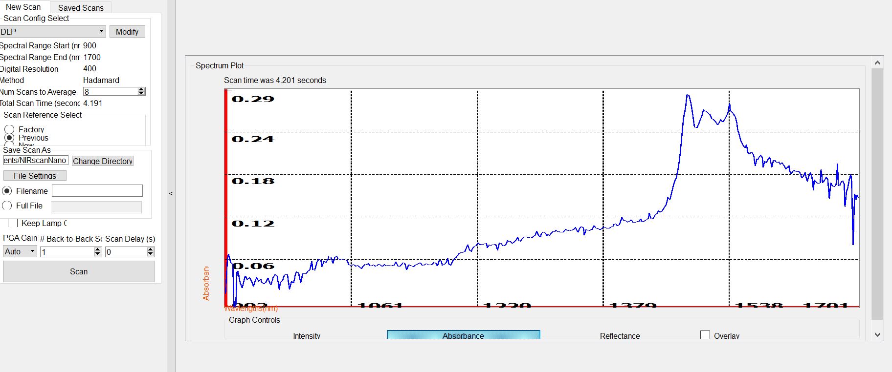 I have a NIRscannao EVM unit, it was working fine but now when I scan a sample in hadamard configuration I get most of the time a noisy spectrum. See picture 1 and 2 they are the same sample without moving the NIR nano neither the sample. If I scan in column configuration this behavior is not present.