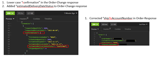 Also we have noticed that "Confirmations" response key is different in change order and new order. For change order we are getting the data within "Confirmations" and for new order we get it as "confirmations". Similarly for "shiptoAccountNumber" and "shipToAccountNumber". Can we make it consistent.
