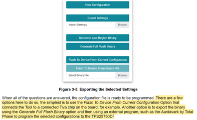 We understand that there is not Tiva chip on USB-PD-CHG-EVM-01 so we can’t use “Flash To Device From Current Configuration Option” of tool.