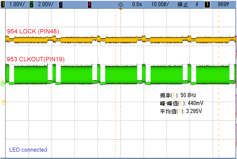 When the LED turn on, they found the 50Hz noise interference on the DS90UB954-Q1 lock pin and DS90UB953-Q1 clkout pin .