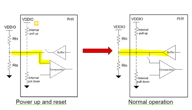 Per TI Precision lab, each strap pin is connected as an input during the POR and then connected as GPIO output during normal operation. Does the buffer connection during the normal operation reset the register 0x6e?