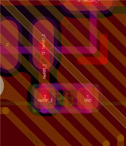 To solve this problem need DE soldering chip and rbias resistor, isolate chip rbias contact, connect rbias copper plane to gnd(use as shield), and solder rbias 11k resistor directly to chip rbias contact and GND.
