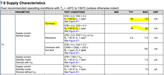 If 2 CAN PHY connected to the same CAN bus is dominant state at the same time, how about the supply current?